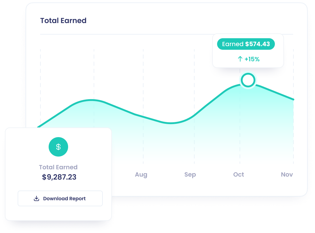 Track your affiliate earnings through a custom dashboard.