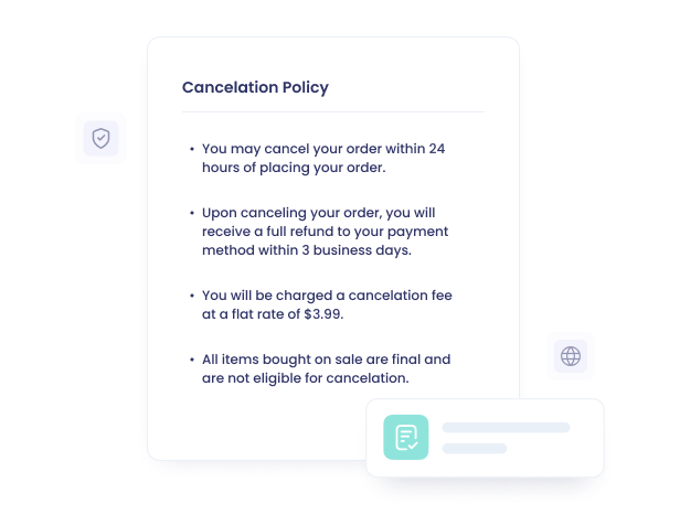 Create a clearly defined cancellation policy that informs your customers of the conditions for canceling their order.