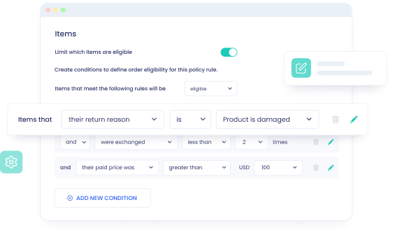 With customizable return policy rules, you can set up specific conditions that cater to all kinds of return scenarios.