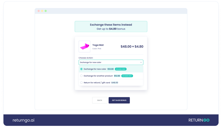 The key lies in incentivizing exchanges in the portal, during the refund process, after a customer chooses to receive a refund. By offering a bonus for switching their refund to an exchange, you can nudge customers who thought they wanted a refund to consider an exchange instead.